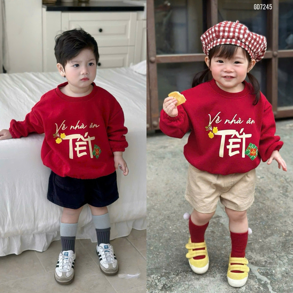 Áo nỉ 2 da gia đình đỏ “Về Nhà ăn Tết” hot đình đám
