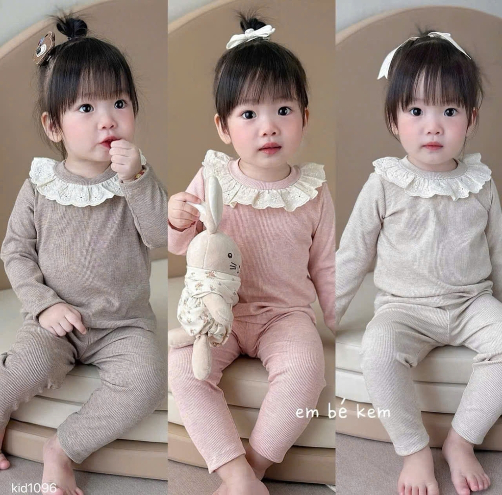 Bộ dài len lông thỏ phối ren cổ siêu dễ thương