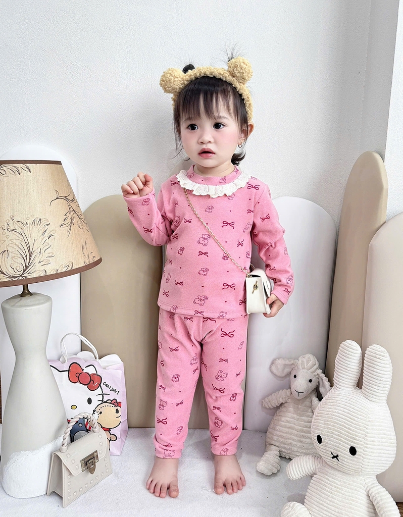 Bộ dài zip lông cổ ren điệu đà, ấm áp