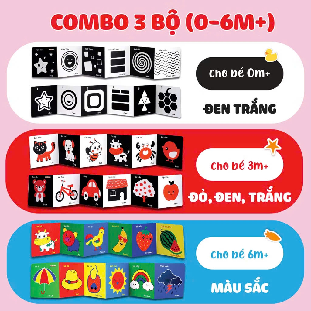 Set 3 bộ kich thích thị giác cho bé (giấy)