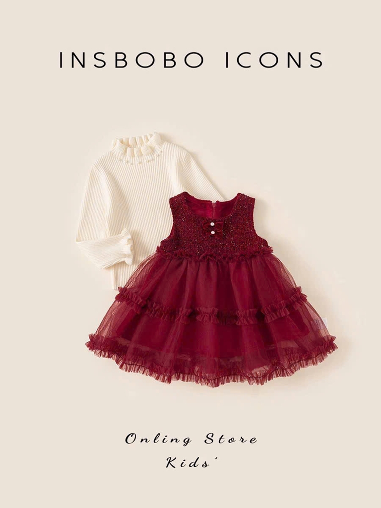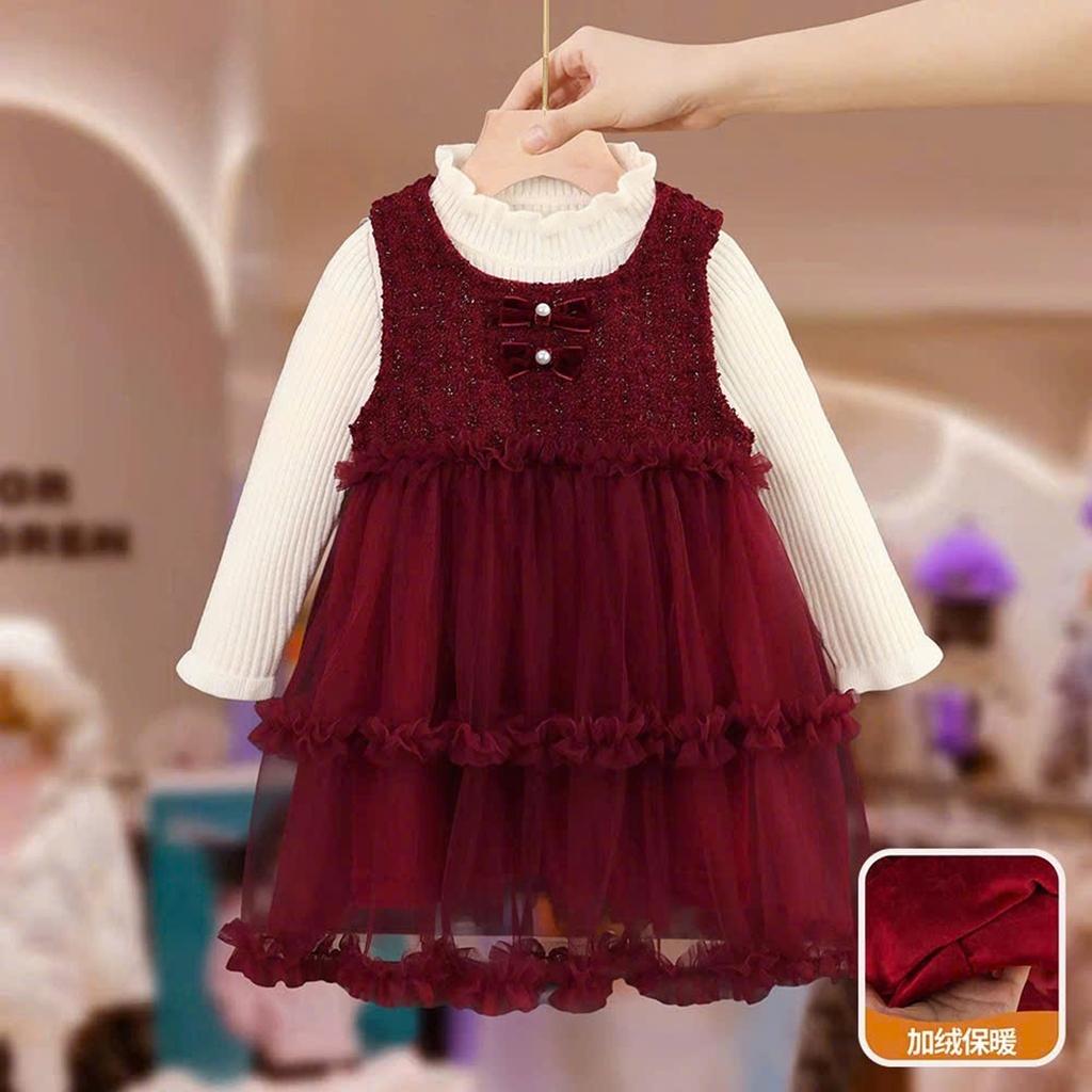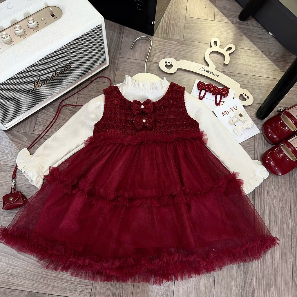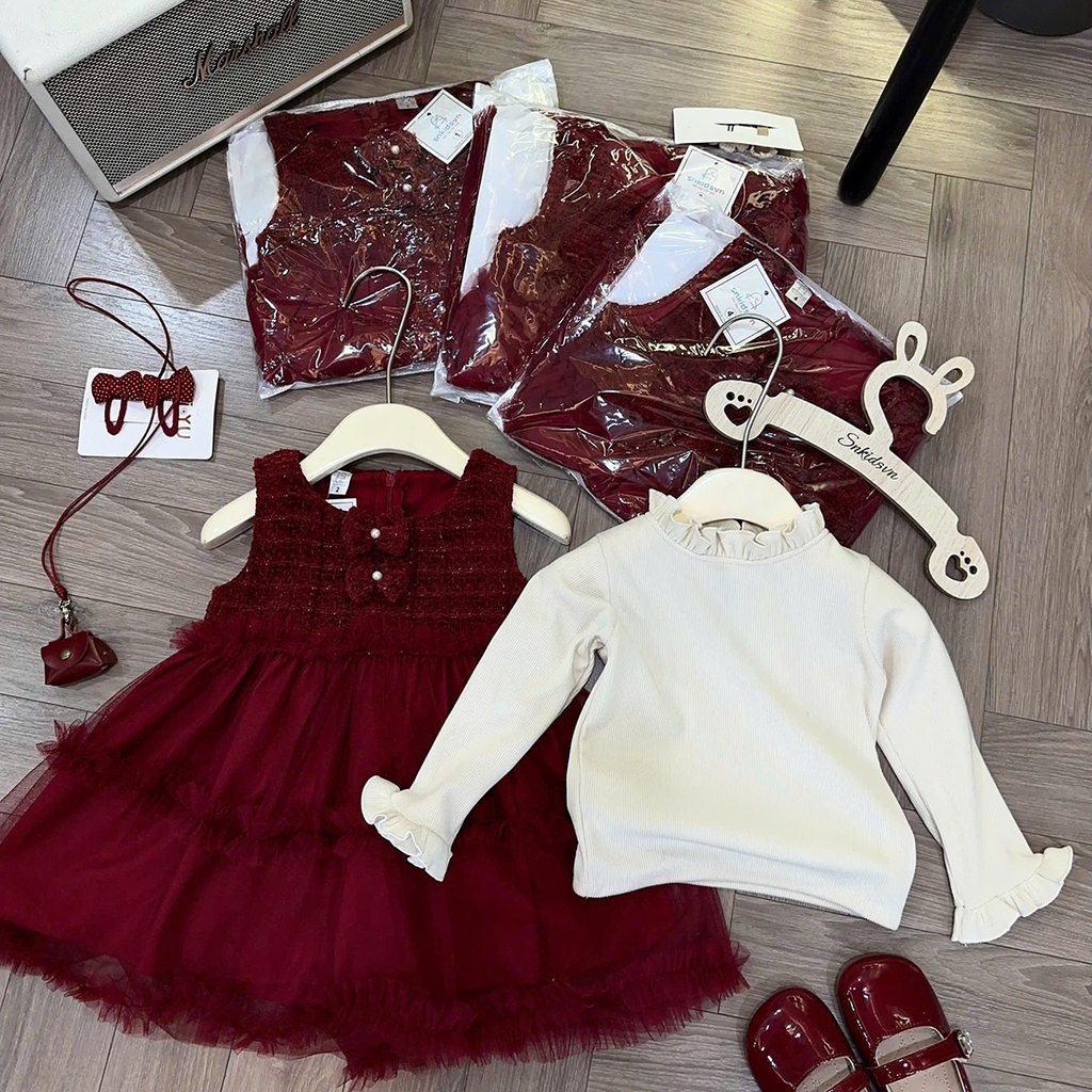 Váy dạ kim tuyến xòe kèm áo cổ bèo xinh xỉu