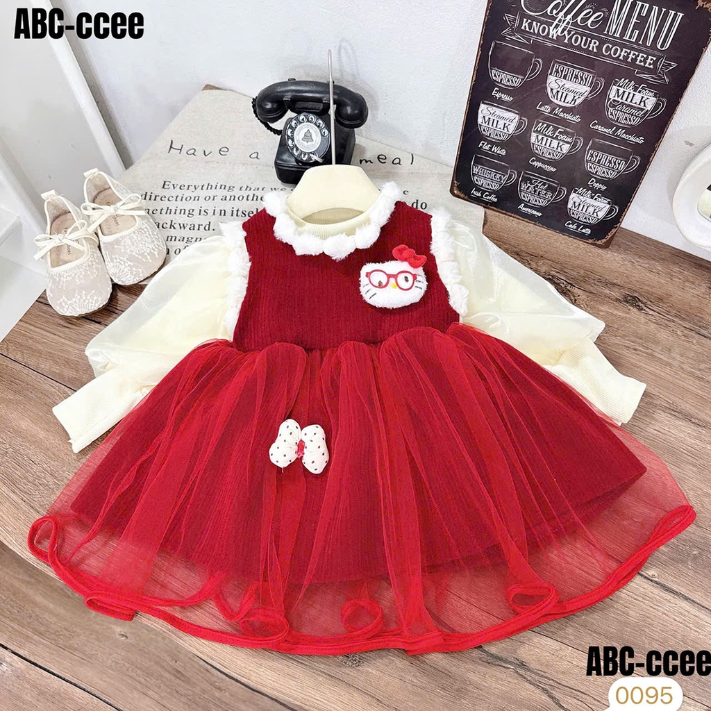 Set váy nhung 2 tầng kèm áo tay bồng siêu dễ thương